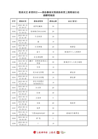 序号 捐助时间 捐助者昵称 捐助金额 备注(留言)