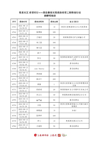 序号 捐助时间 捐助者昵称 捐助金额 备注(留言)